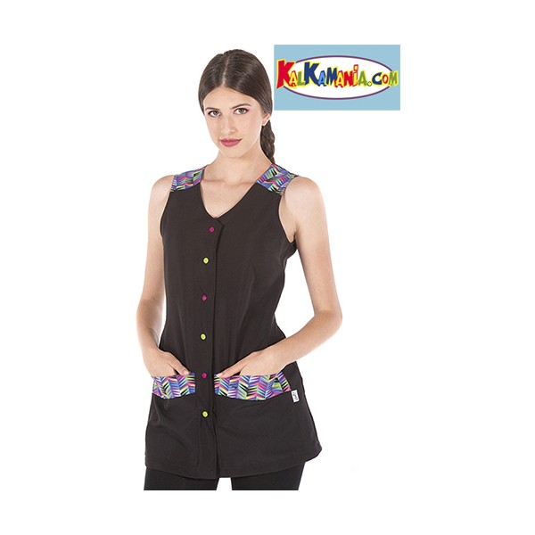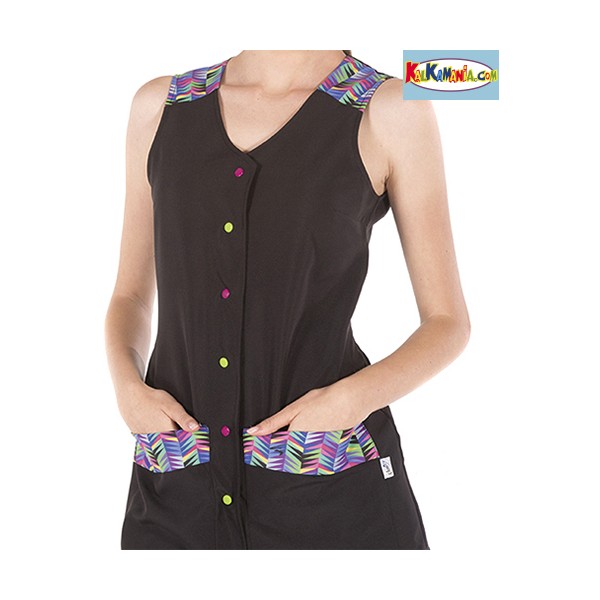 Blusa sin mangas con estampado de colores disptribuidos en forma de espigaCalidad: 100% Poliéster High Quality
