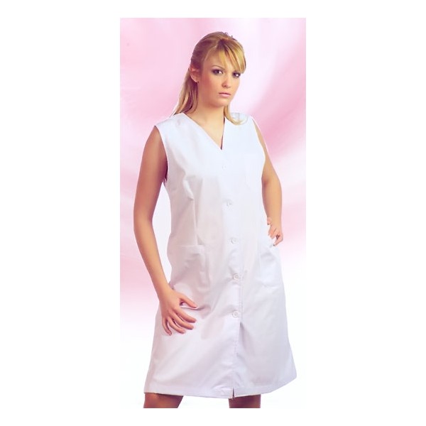 Bata señora cuello pico sin mangas sarga blanca. Composición 65%poliéster-35%algodón. Color 101 blanco.