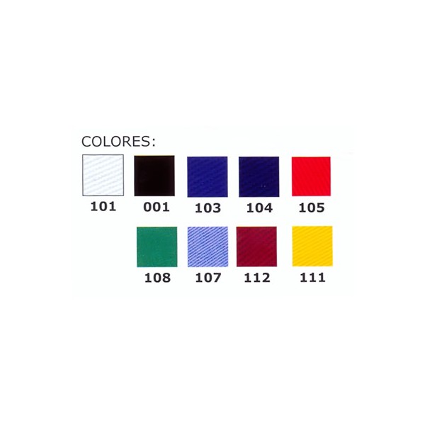 Delantal Bistro escote en pico con bolsillo en el centro. Medidas 50x75. Composición: 65%poliéster-35% algodón. Color 101 blanco; 001 negro; 103 azulina; 104 azul marino; 105 rojo; 108 verde quirófano; 107 celeste; 112 burdeos; 111 amarillo.