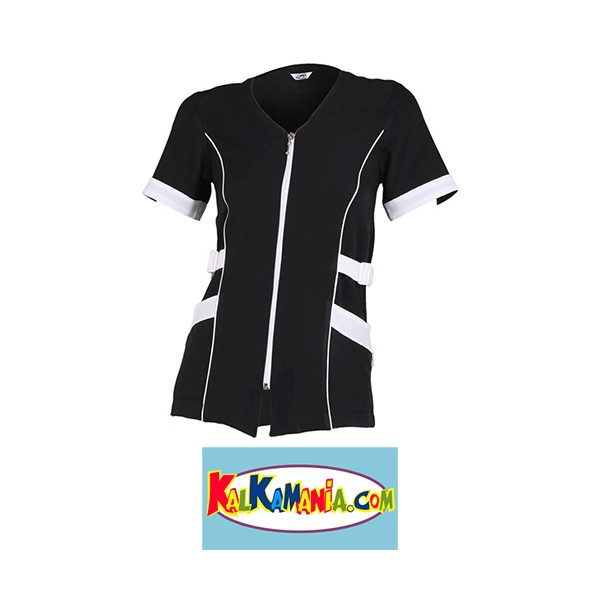 Blusa Señora manga corta "Viena". Composición: 100% poliester strech. Color 001/101 negro combi blanco.