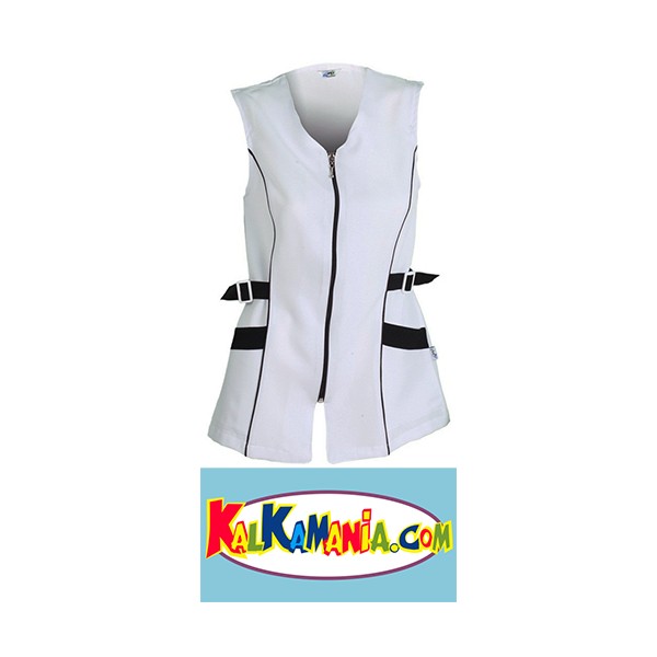 Blouse femme sans manches . Composition: 100%polyester strech. Couleur 101/001 blanc et noir.
